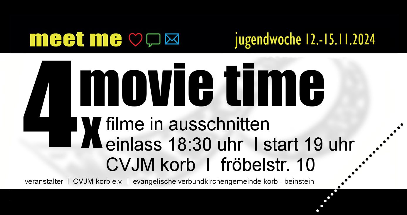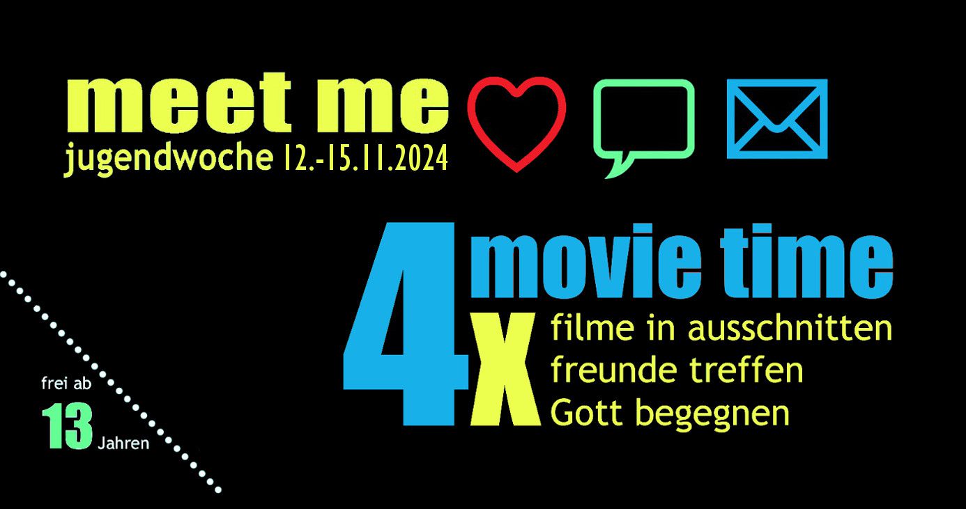 Du willst 4-mal etwas Anderes erleben, dann bist du bei der meet me Jugendwoche genau richtig! 4x movie time Abende mit ...