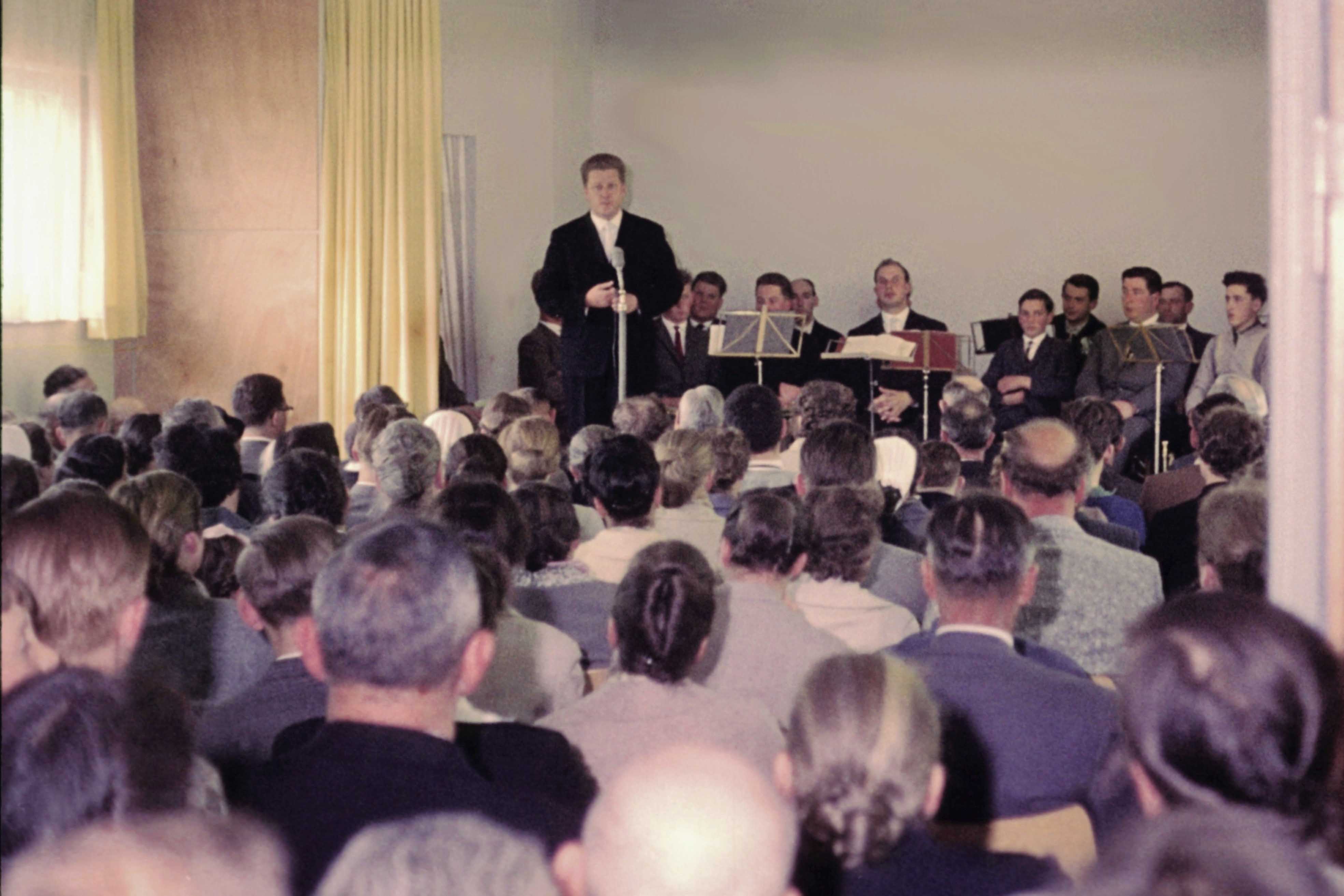 Beim Jugendabend ist Karl Wezel aus Walddorf zu Gast. Im Festgottesdienst hält der damalige Vorsitzende des Jungmännerwerks und spätere Landesbischof D. Theo Sorg die Predigt.